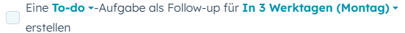 Tipp: Wenn du den Kontakt nicht erreicht hast, stelle dir hier direkt eine automatische Erinnerung ein, damit du daran denkst, dich in wenigen Tagen erneut zu melden: ![]()