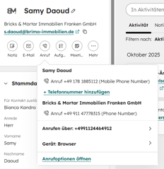 Du kannst in HubSpot direkt aus einem Kontakt heraus Anrufe tätigen. Wie du die Funktion aktiviert, siehst du hier.