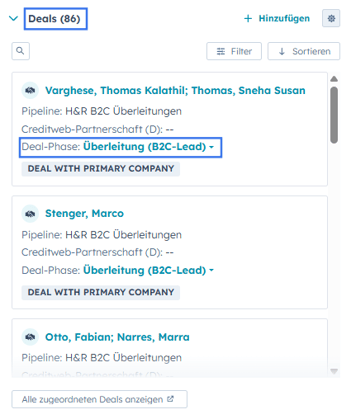 - Deals zeigen die Überleitungen durch die Partner aus den zuvor getroffenen Vereinbarungen