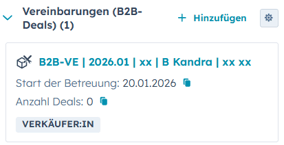 In HubSpot wird die Vereinbarung in der rechten Seite im Kontakt hinzugefügt um abzubilden, auf wie viele Überleitungen wir uns mit dem Partner geeinigt haben.