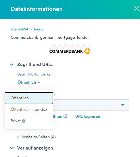 - Öffentlich – No Index: Die Datei-URL ist für jeden öffentlich zugänglich, der die URL-Internetadresse kennt oder errät. Suchmaschinen werden angewiesen, die Datei-URL nicht zu indexieren.